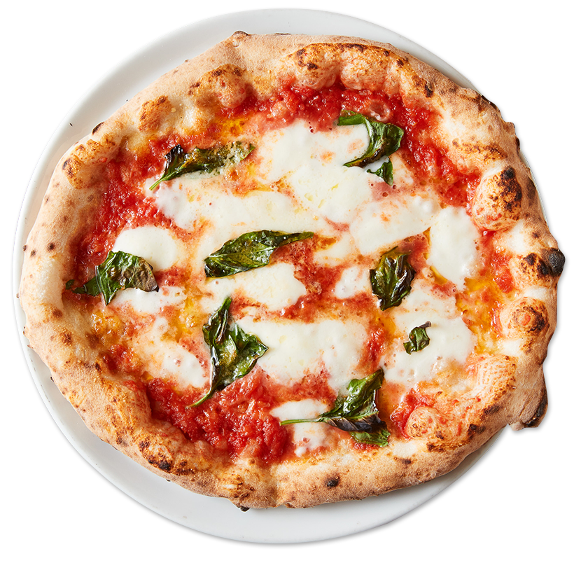 コク深い水牛のモッツァレラ、36ヶ月熟成のパルミジャーノチーズを使用した、プレミアムマルゲリータ!
